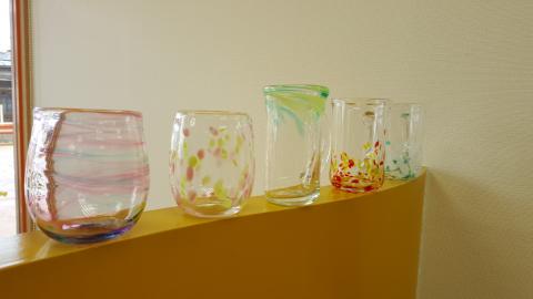 山から下りて向かったのは【吹きガラス体験】写真は2人ですがみんなで思い思いのグラスやカップを作りました。かなり楽しい時間でしたよ~