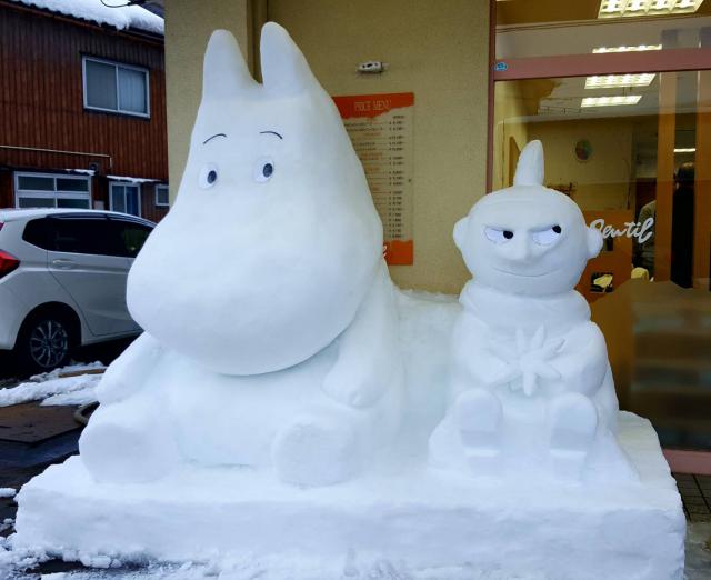 この雪を見ては喜んでいる2人がうちにはいます・・・。ええ、ジャンティ雪像職人たちです。