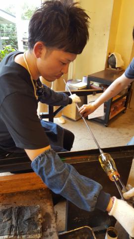 山から下りて向かったのは【吹きガラス体験】写真は2人ですがみんなで思い思いのグラスやカップを作りました。かなり楽しい時間でしたよ~![]()